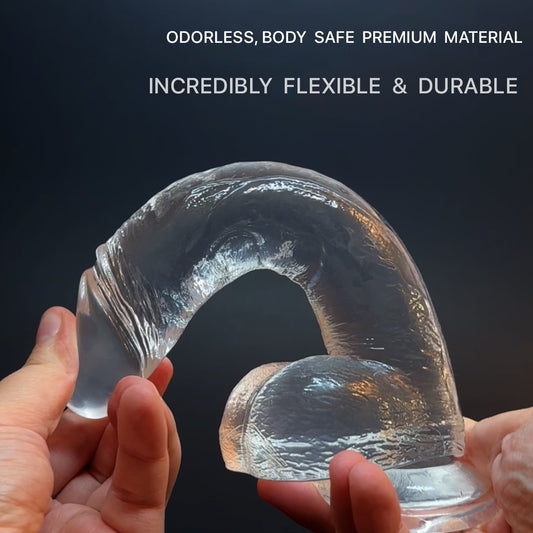 Clear Realistic Textured Jelly Dildo 8" with Suction Cup