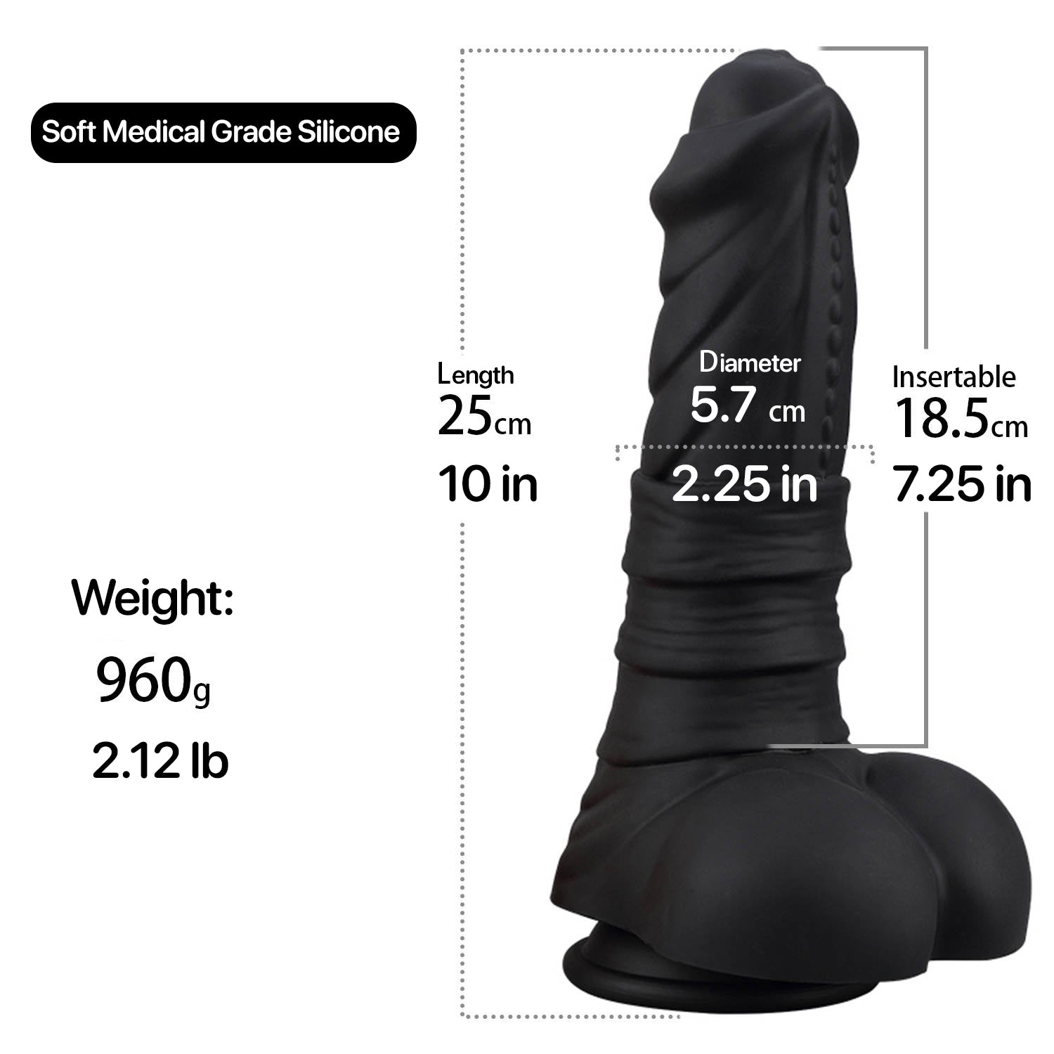 - OVERSIZED for INTENSE PLEASURE: A grand 10" in total length and 7.25" insertable, this dildo is designed for those seeking a fulfilling and adventurous experience, suitable for both g-spot and anal play.