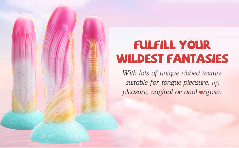 Fantastic Colorful dildo made with safe medical liquid silicone. Odorless. Feels soft and nice. Weighty, squishy and thick for maximum filling up sensation. Perfect for fantasy adult play using us: elf penis, good dragon cock, liana prick, alien dick, beast phallus, underwater creature pecker, muscle fat meat, bud flower willy; caterpillar, larva, egg, cocoon sex toy, etc.