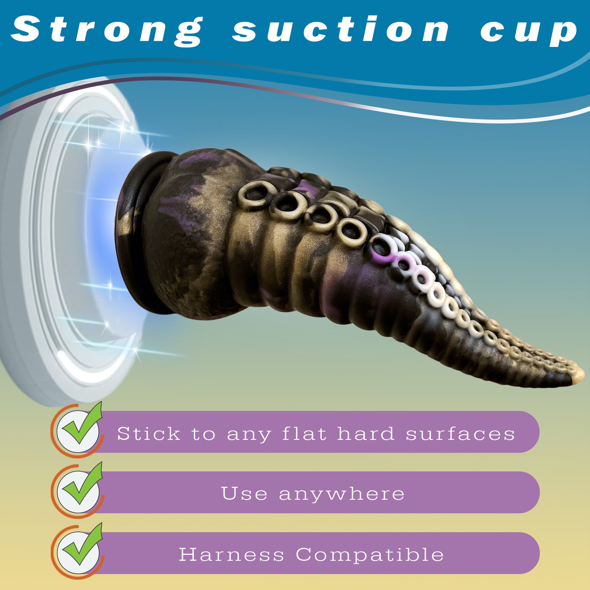 For added convenience, our tentacle dildo features a strong suction cup base that attaches to most smooth surfaces, making front or back riding a comfortable and effortless experience. If you choose to use it on a wall, please consider additional support due to its weight.